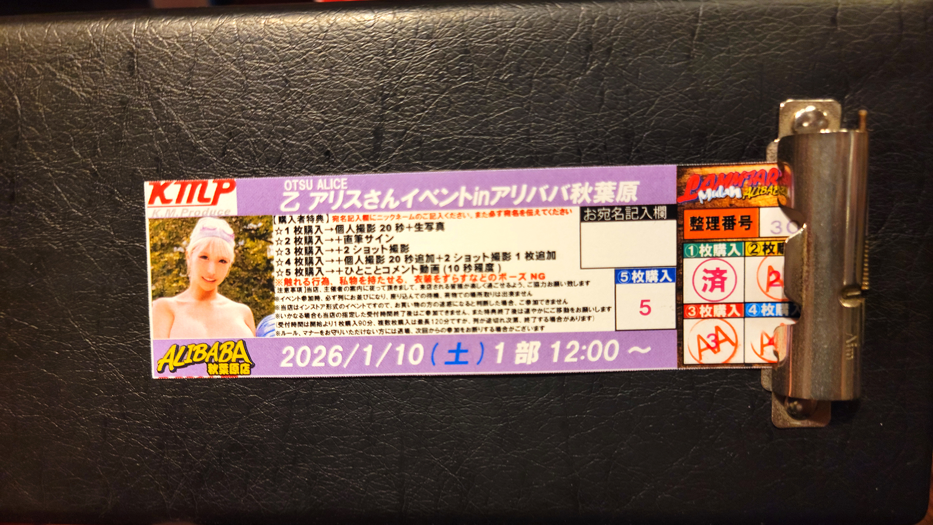 I got the specific Alice DVD being promoted for the event, MKMP-690, and had three other KMP DVDs to choose from. There wasn't too much to choose from at this store but I chose 2 more of other actresses and 1 more of the same Alice DVD.