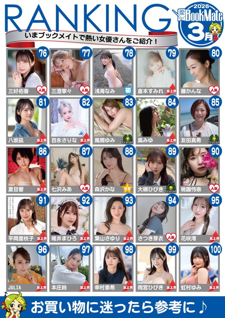 Melody Hiina Marks (メロディー・雛・マークス) being this popular on Bookmate of all places is very surprising. I can understand a bit on DMM when the market is much wider but this is exclusive to domestic only. We almost never see non-Japanese doing well domestically. I was entirely correct on June not having long term potential but maybe Melody does because her body is more in line with what the domestic market values. It’s a shame Melody isn’t full time there because she could shine, but as far as I know she’s very popular in the western market and might stand to do poorly in Japan. That being said, she’s doing well even without a new release in March (this is actually a compilation) and who knows what could happen if she keeps up her Japanese lessons.