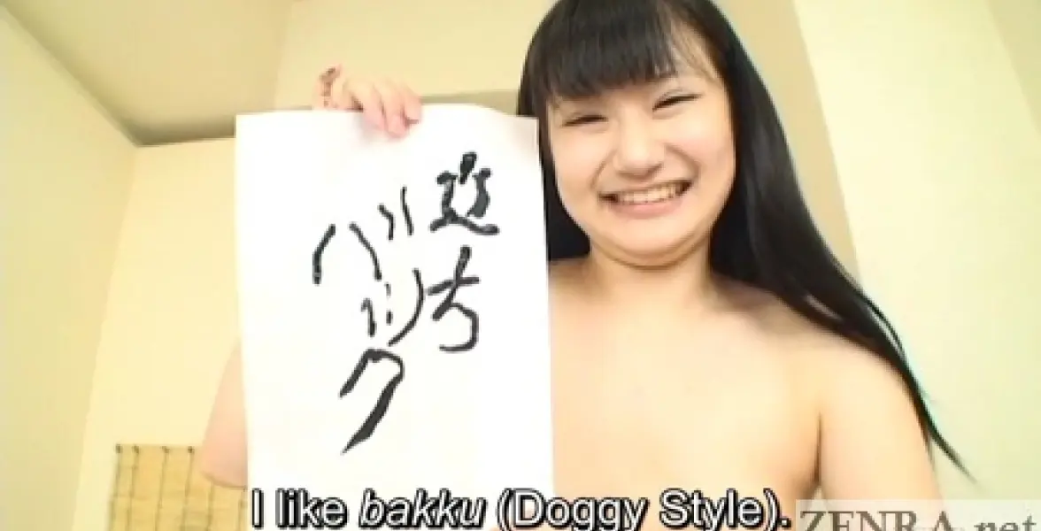In STARK NAKED JAPANESE CALLIGRAPHY, six Japanese amateurs take turns practicing their shodou skills. What starts out as just your average writing sessions becomes increasingly more perverted and prurient as each scene runs its course. Stripping is obvious, but given the mildly phallic shape of a brush, its way of being 'held' segues from hands to mouths to feet and yes, to vaginas as well. The final volunteer goes one step further by sticking it into her anus while writing out something excessively naughty.
