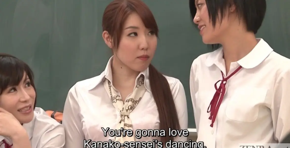 The dream of many a teacher is tenure, but the road to achieving if can be rather fraught. Just look at poor Kanako Ogawa (played by NOZOMI HAZUKI) whom not too long ago was put through incredibly shameful lesbian hazing. It wasn't just her dancing naked while singing about her extremely salacious sexual escapades. Oh no, her tormentors only used that as a stepping stone to the absolute insanity that was that class assembly where she and a new transfer student (played by SAKI HATSUMI) enacted sexual charades that just got worse and worse. By the end, they literally were eating out each other's assholes while clothed students watched...and laughed!