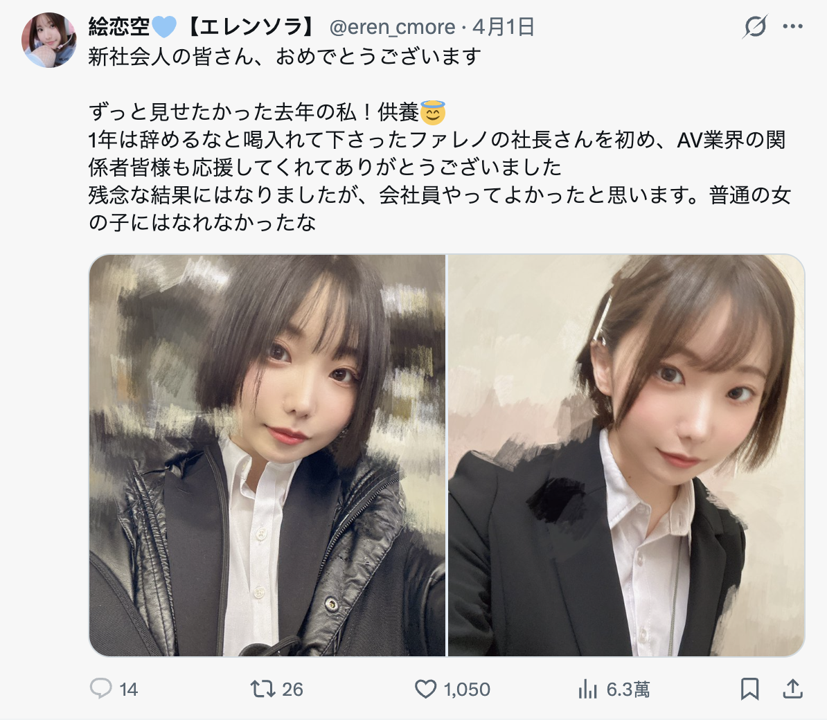 — 絵恋空🩵【エレンソラ】 (@eren_cmore) April 1, 2026