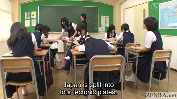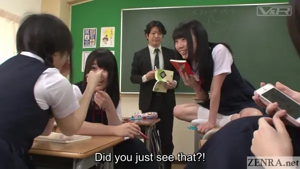 Also imagine this: during one of the worst days of of your teaching career where your ire against your class full of miscreant schoolgirls reaches fever pitch, you decide enough’s enough! You focus all your mental energies into one big psychic roar that ends up causing them all to lock up! Gone are the inattentiveness, the bickering, the disrespect. In its stead, you’ve a class full of ten hyper-obedient and very cute young Japanese women willing to do whatever you want.