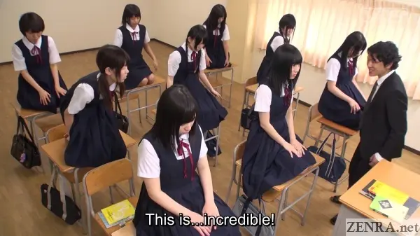 The sensei did a great job here. Having a class of so many attractive young women eager to do *anything* he says is heaven on earth. He even gets his revenge on them consistently ignoring his lessons. After all, he's just there to ensure they get an education and if that doesn't pan out, what's the harm in having unprotected sex with a few while everyone watches in the buff? Parent-teacher day may end up being somewhat awkward, but that's something he can worry about later.