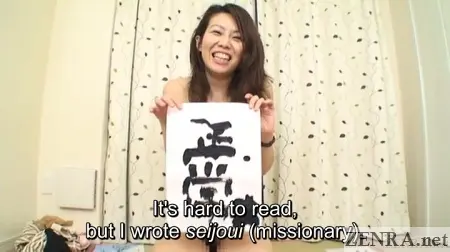 In STARK NAKED JAPANESE CALLIGRAPHY, six Japanese amateurs take turns practicing their shodou skills. What starts out as just your average writing sessions becomes increasingly more perverted and prurient as each scene runs its course. Stripping is obvious, but given the mildly phallic shape of a brush, its way of being 'held' segues from hands to mouths to feet and yes, to vaginas as well. The final volunteer goes one step further by sticking it into her anus while writing out something excessively naughty.