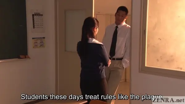 “Reiko Mizutani (REI MIZUNA) is a language arts teacher who is secretly dating Shinichi, her top student. To make matters worse, one of her coworkers with a bone to pick (Kunio Katayama), finds out about their tryst. Reiko does every demeaning act Katayama demands of her in order to protect her relationship with Shinichi. His demands keep on escalating to the point where she’s acting out perverted and masochistic fantasies in school in the middle of the day. She soon becomes the sexual plaything of one of her own students with a focus on anal degradation. Watch as Reiko steadily descends into the darkest pits of extreme prurience.”