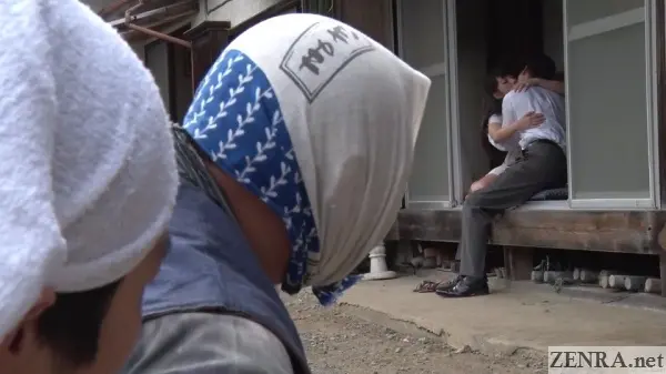 YOBAI MURA sees MIKI as the sole female in a village way out in the middle of nowhere (that still has somewhat busy road clearly visible in some shots...). Like YUI's, we're seen villagers follow bizarre and archaic customs to keep their way of life from falling to...well, the wayside. The difference this time is MIKI has always been living in the village and knows from day one that since her deceased husband couldn't help her conceive, she'd have to take turns with many of the townsfolk in his stead. Of course, an out-of-towner reporter enters the picture leading to very complicated love.