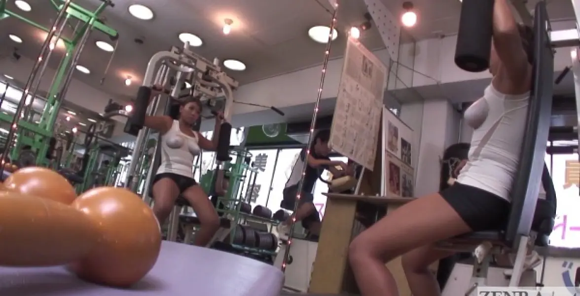 BODY PAINT AT THE GYM is a relatively quiet title. Literally the first ten minutes or so simply has NAMI walking around training and exchanging brief pleasantries to other gym-goers. Soon after perma-perm OKUMURA becomes her impromptu trainer. Their training session starts normal, but once he notices how exposed he is, things quickly go off the rails. Dialog goes from standard personal trainer banter to a few sexual word puns before hard play commences. From there, it's uncensored JAV so you know how it goes.