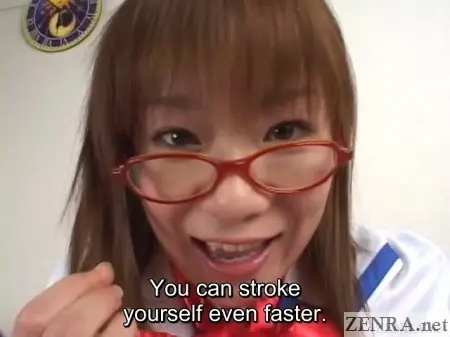 It was over a year ago when we showed the first update from it. That one starred a few AV stars commencing with (at the time) the uber-popular MAO MASAKI. The concept then and the concept repeated today in COSPLAY MASTURBATION ASSISTANCE is simple: very attractive Japanese women watch YOU masturbate. In these titles, YOU does not equal an actor. These titles are filmed in POV, but not pseudo POV with someone else's erection on the screen. What happens here is we're shown a total absence of on-screen actors. All we're given is the actress herself talking right into the camera. She's addressing YOU and only you.