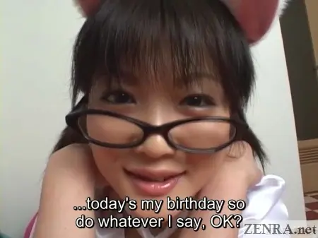 What does go on is a bit more than simple masturbating observance; each actress donned to the 10's in cute cosplay maid attire instructs you to a few various embarrassing acts beforehand. One has you strip naked and pose in some very unusual ways. Both seem to have a fetish for anuses and ask you to show yours. They even kindly request you spread it so they can stare deep into you. Finally, the last few minutes of each scene are about actual self-pleasure which they watch in awe. Being a title about one actress needing to rush to the other's birthday party, time is limited so expect a generous countdown to conclude each scene where having an orgasm on time is highly appreciated.