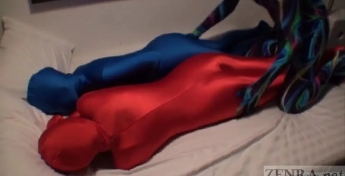 Now it's very hard to call what they do adult video. Having every inch of oneself covered makes it hard to be overtly explicit, but make no mistake: their titles are erotic and we could not turn down the chance to showcase a few of them on ZENRA. In fact, the second and third of the trio we licensed are much harder by featuring mutual masturbation to its natural conclusion and even include shots in the changing room. Underneath each ZENTAI uniform is a person and that person is as naked as they come!