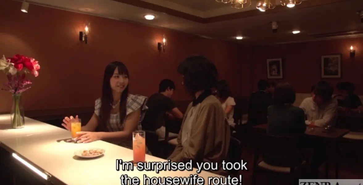 Fans of massage JAV titles may be a bit annoyed that while this title is technically categorized as one on our site, only really the first sexual encounter can count as one. At its core, ENTANGLED is a title about a sexless Japanese wife finding an outlet for her untapped eroticism. It's a risky outlet that soon enough leads her to do unthinkable things like being a naked maid, flashing customers at a bar, and even giving one of them a covert blowjob then and there! She lies to both her friend and husband in order to keep her secret sexual activities alight. She wants more and as the title closes, we see her story is far from complete.