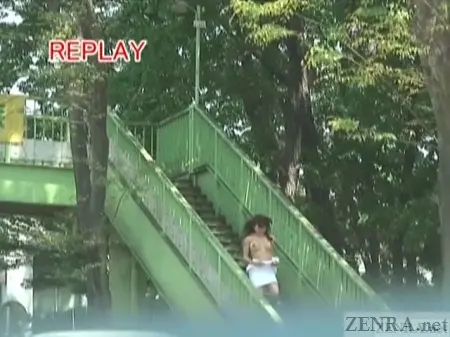 Japanese adult video studios knew this. They also knew that their fans wanted to see how far they can take things in public--and by public, we mean in areas where people gathered in droves. A few glorious years brought us some amazing extreme public nudity titles by BAKKY VISUAL PLANNING. After BAKKY folded, another company took up the slack. They are COLLECTOR whom we have featured several times this year and will be continuing to feature on ZENRA for years to come. COLLECTOR is one of the more extreme maniac makers of adult video. Early on half their releases were heavy group events and the other half was public nudity following in BAKKY's footsteps. Nowadays, they mainly focus on the former with public nudity movies being relatively rare.