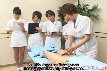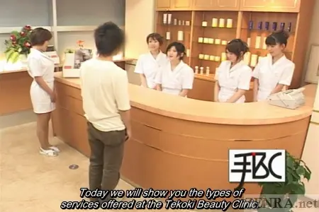 Tekoki Beauty Clinic Health care services are booming in Japan. No matter where you are in the country, you are exposed in some way to a myriad of health and fitness programs whether or not you really have any interest. From the late night (and now afternoon) TV infomercials about the wonders of glucosamine to seeing billboards aplenty in every subway and train station for local doctors of varying specialties and bone-setting clinics as well which can give you a decent massage for pennies on the yen thanks to Japan's nationwide insurance system (seriously, you can get a 45 minute massage for only about $4USD if you have insurance!). There are also clinics now in select metropolitan locations across the country that specialize solely in the health and happiness of the male genitalia. These Penis Health clinics—aka Tekoki Beauty Clinics nicknamed by frequent customers who all can boast shiny manhandled Johnsons are a great way to rejuvenate a relatively private area through the careful hands of beautiful Japanese penis technicians. In this production, we are given a rundown of what the average full course (approx. 90 minute) service entails. An added bonus is the fact that since today is a training day, rather than only one cute Japanese beauty working on your exposed manhood in this CFNM vision from heaven, we are given the opportunity to have an entire group of them each take turns in order to hone their skills. The first thing on the menu after removing your pants and undergarments is a slow and tender massage of your groin area with a liberal amount of massage oil. While this is happening the four trainees look on and take careful notes. Some even go through the motions in the air on their imaginary stunt-cocks. After the massage portions concludes, your cock is now lathered up with a special sable cleansing treatment akin to the hard-creme makeup masks some woman wear in order to give their faces a healthy glow. Although having a hard crème applied to your cock may sound somewhat uncomfortable, do not worry; the crème itself has been designed specifically for penile use so it will not turn rock hard like face masks do and a beautiful Japanese woman with years of experience in cock-handling will lovingly apply it to your hard member as her trainees look on and anxiously await their turn to handle a real live customer cock. After this process is complete, the masque is lovingly washed off and a second sensual massage is performed on your hardening manhood. This time, the massage is a bit longer and more involved with unique stroking patterns such as a two handed pumping motion along with delicate finger-play around the head of the shaft and perhaps it is due to the trainees carefully staring at your cock or maybe it's the pouting lips curving into a half smile by the penis technician working on your cock, but the stimulation has nevertheless led you to reach the point of no return and with a quick, blurted apology you ejaculate all over the surprised hands of the masseuse as her trainees look on in shock. At the Tekoki Beauty Clinic, accidents such as this do happen from time to time but the staff are trained to handle it with utmost professionalism. Handjobs after all, are their forte and if a customer ends up jizzing over their hands and faces too sometimes, it's all in a days work. SUBTITLED DOWNLOAD - 1 2 3 4 5 6 |