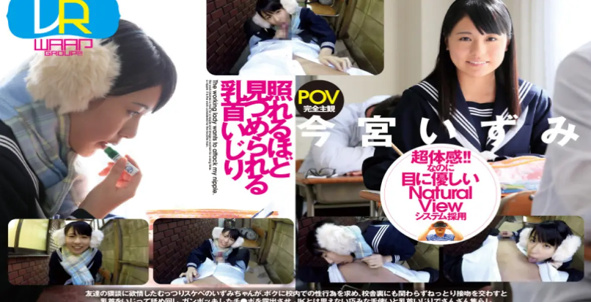 We're not sure whether it's done intentionally or not, but WAAP's VR titles more often than not feature younger actresses. They seem pretty big on exploiting the naughty Japanese schoolgirl trope and IZUMI IMAMIYA definitely plays that part well. In NIPPLE TEASING TO THE POINT OF EMBARRASSMENT, she takes the role of a bored, but mischievous schoolgirl who finds solace to her post-band practice ennui by teasing you just out of earshot of practicing classmates.
