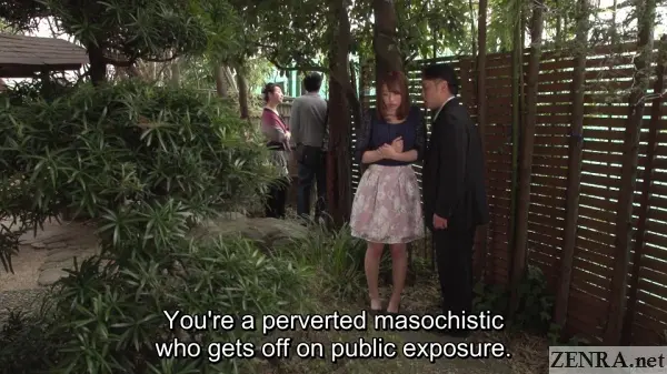 #Subtitled #HD #ExclusiveTrained to be a pure masochistic pervert, cheating wife Saki Hatsumi has sex with her paramour while a clothed audience watches.
