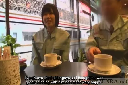 Each of the four scenes begins with an on-location interview. Outside of the nearly pure white studio, we see glimpses of 'real Japan' via the aforementioned ramen shop, an izakaya (Japanese style whatever-ya-got restaurant), a coffee shop, and a less than desirable public housing unit. Here, the couples are initially introduced and are asked about their stories. Conversation centering around their dating history together, how did they meet, etc., is carried out before finally talking about their desires for taking part in the 'challenge'. At the end, dates are confirmed and a studio map along with a nice 10,000 yen x 2 participation bonus is handed out. The studio itself is bare-bones and empty, yet due to the warmth that the one-and-only Myuu-san brings (yes, the same Myuu-san who has hosted a plethora of CFNM films on Zenra), an aura of coziness is present. A second round of interviews takes place with the timid couples. Timid, due to fact that they'll be nude and engaging in the most carnal of acts in a short moment while being filmed. These second interview rounds focus more on the naughty parts of their relationships rather than the more mundane details covered earlier. Here, Myuu-san with her ribald sense of humor, sneaks in lewd questions about fetishes and memorable sex acts and surprisingly digs out answers. One of the biggest upsets came from the third couple--the one with the huge age gap. That timid accounting employee wholeheartedly enjoys having her anus licked! Fortunately, her partner gives and gives and even receives some in the double rimjob they engage in as they 'warm' themselves up for the main event. Most couples have mentioned that they've always engaged in safe sex--intercourse using a condom. However, the objective of today's event is to see how long they can go without a condom. Can they make it to 1000 thrusts? What if they finish too early (hint, this happens more than once) or too late (this also happens...but...)? The rules of the contest when it comes to timing are anything but forgiving, but Myuu-san, being the unsullied angel she truly is, offers couples who finish too early a deal: they can go for another round right away and if a second ejaculation is achieved precisely on the 1000th thrust, they will receive half the prize money. This second go-around is quite the tall order. In fact, one couple came within 140 thrusts of the goal before accidentally finishing. Going from freshly ejaculated to rock hard and ready to finish once again in 140 thrusts is nigh on impossible--even for the most sprightly amongst us yet one couple tries their darn hardest. The reactions to the couples who had an early orgasm are hilarious: the female boss tersely instructs her younger co-worker to get to it whereas the college couple's beau also plunges right back in mixing his rebounded stiffness with fresh semen and the womanly juices of his lover. Doing the act bareback for the first time in combination with that unique milky sensation surely feels soundly piquant.