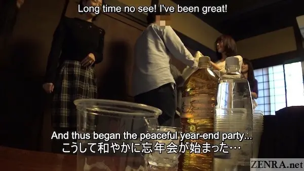 The GOGOS Cinematic Universe (hereby abbreviated as GCU) is one of the coolest JAV creations not many in the west know about. Outside of this studio, few others even when casting the same faces will explicitly reference previous works. Sure, you may see vanilla movies that break the fourth wall where an actress may talk about previous movies by the same maker or filmed by the same director, but what GOGOS does is...well, special. They're the only one to my knowledge that when utilizing the same actresses will reference previous works, but keep it contained within their universe. Keiko (fake name, not someone from this movie), may have first had a fling with Director Karaki followed by her husband finding out and instead of being angry, asking her to do it again, but this time with extra women in attendance! Something like that actually is what goes on in today and next week's incredible double update, GOGOS FEMALE EMPLOYEE FILMS YEAR END CHEATING WIVES ONSEN PARTY 2.