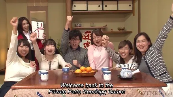 Being known as a JAV studio that really does accept and film fan requests, what we get in THE PRIVATE PARTS GUESSING GAME HOME VISITATION NEW YEARS SPECIAL is everyone's favorite game showing moving to extra cramped quarters but somehow SUCCEEDING in spite of it! Certainly helped by veteran host RIRI KOUDA, we get lucky Takashi-kun (whom I am darn near certain was in a previous edition of this series using a different name and with a different cast...) and not three nor four or even five, but six females eager to strip down so they can have their private parts intimately looked at, licked, touched, and you know what else all to win some New Years cash. While we don't find out just how much money is on the line, the envelope RIRI parades around is really, really big.