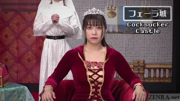 In fact, one of the potential minuses ROCKET uses to its benefit is casting: RPGs with big, lush world require many characters, but anyone who has played RPGs back in the day knows with storage on cartridges being so limited, video game makers must make cuts to fit all that data. Most commonly is by re-using sprites so 'flower girl' in 'quaint village' suddenly becomes 'princess' even though it's obvious it's the same sprite profile but perhaps with different colors. ROCKET casts three actresses who all play a variety of roles: MIZUKI HAYAKAWA (who looks great with short hair and seems to be aging incredibly well) as cute cat girl dancer/palace guard/female warrior, RINO YUUKI as HERO's fiancee/sorceress in the Adventurer's Guild/sage, and MIO NOZAKI as wench/princess/martial artist. All nail their parts and when the glitches begin due MOBUSUKE's libido taking center stage, it works surprisingly well. Sure, they each only have one or two lines per scene, but when the play begins...
