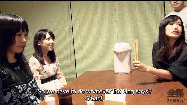 It remains questionable how often those in real life in Japan end up playing wild bouts of King's Game that lead to everyone having sex together. On a whim, it's probably pretty rare and most likely happens more than JAV than anywhere else. This goes double if we've three cute and young friends with a pair of guys who seem to be at least two decades their seniors. Somehow though the dares do end in wild group sex and nobody brought rubbers.