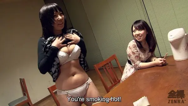 TOGETHER WITH MY FRIENDS, not to be confused with TOGETHER WITH MY FRIEND is for DREAMROOM at least, a very unique movie. Starring not one nor two, but three actresses, we get something that pushes into orgy territory (really, when can one safely use that word? Ten participants with at least four being women?). The three seemingly are on a hot springs trip but are otherwise sitting around a barebones table in a relatively empty room that looks closer to a stripped office for rent than the private lounge at any ryokan. But hey, JAV is JAV and budgets are a thing so one cannot complain much.