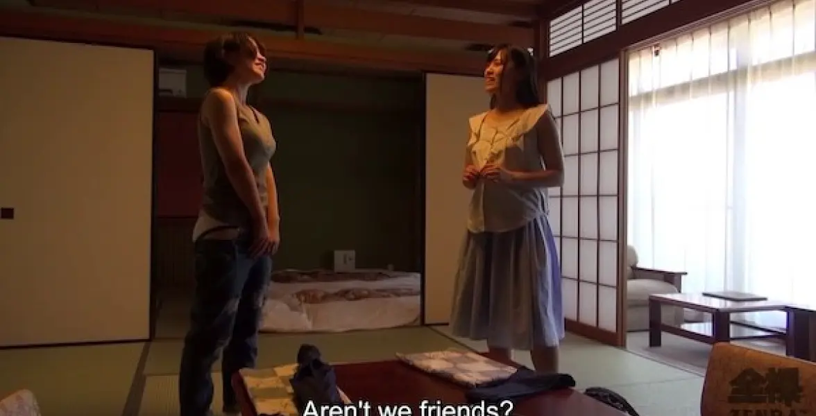 Movies like this that are almost entirely self-shot are not easy to shoot well. YURINA really nails it though and thanks to that, this nails the 'expert amateur' vibe. Since reality is the name of the game, the cameras help, but so do the ample time early on given to the backstory. Life, as noted, can be harsh. Relationships can get...weird. Is a boyfriend good enough for this 27 year old nurse? Or will this be the trip that sets things right: "no more love from men, they're not dependable! For me, for now on, it's women and only women." A lesbian success story and one for the ages where testing the waters begins with a talkative train trip, a walk in the park with cicadas in full susseration, and concludes with endless and extra passionate lesbian sex both in a high class private onsen and then back in their room with yukatas scattered around like rose petals after being doused by a freak November shower.