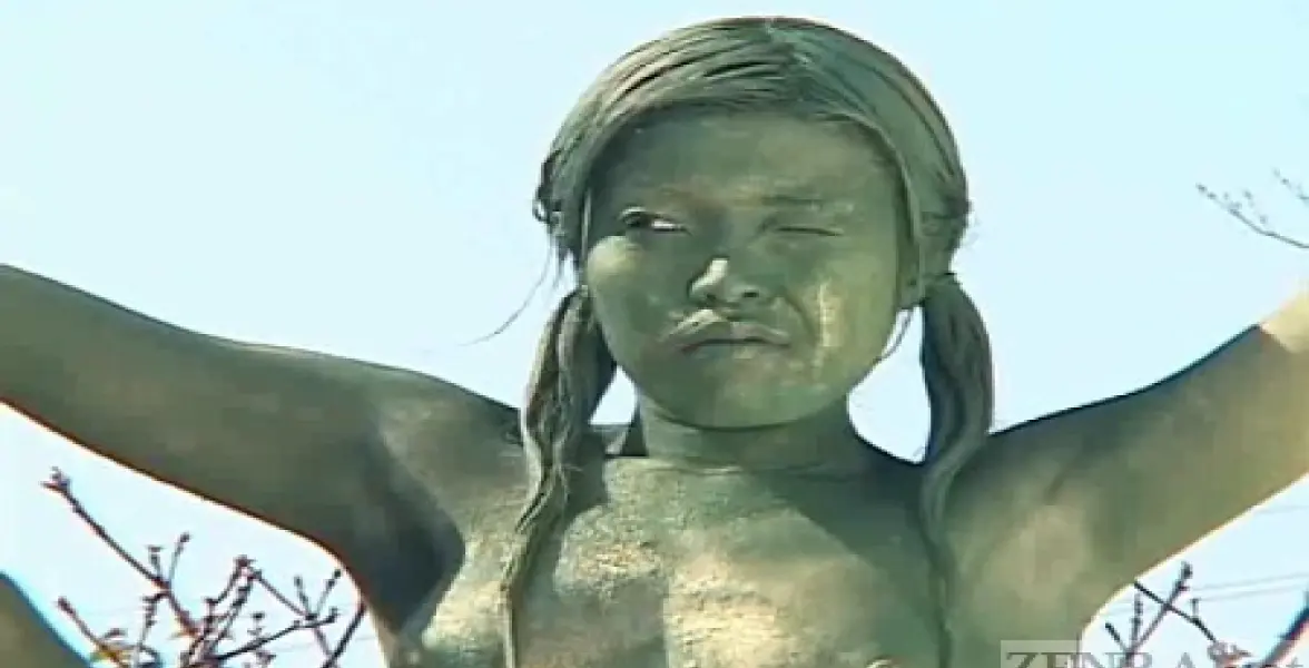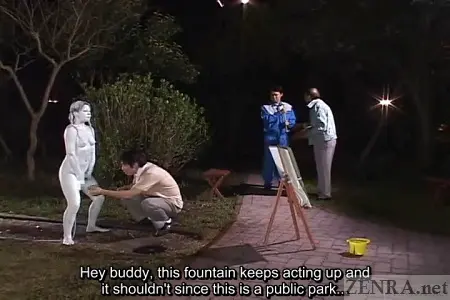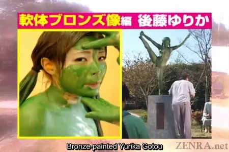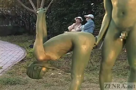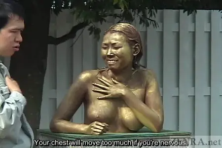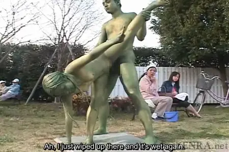 #Subtitled #ClassicJAVA Japanese prank taken to a new level by having an AV star painted and placed in a public park as a statue. Japanese students go naked in school with subtitles.