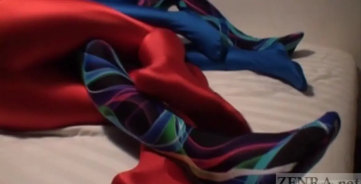 Now it's very hard to call what they do adult video. Having every inch of oneself covered makes it hard to be overtly explicit, but make no mistake: their titles are erotic and we could not turn down the chance to showcase a few of them on ZENRA. In fact, the second and third of the trio we licensed are much harder by featuring mutual masturbation to its natural conclusion and even include shots in the changing room. Underneath each ZENTAI uniform is a person and that person is as naked as they come!