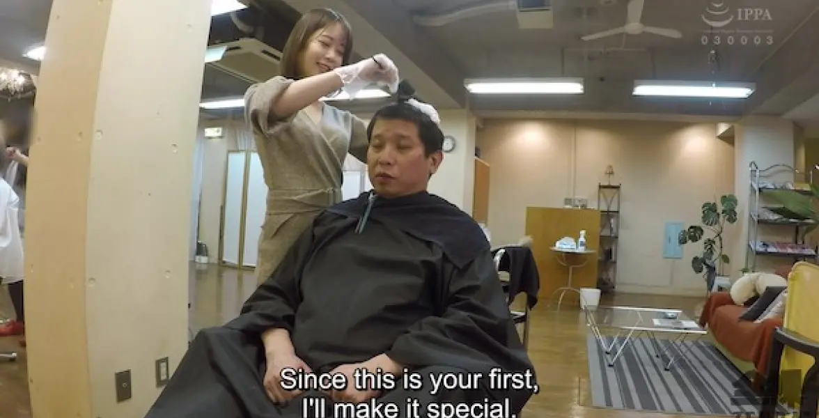 With that said, today we are happy to show her first entry on ZENRA and hopefully not her last. We return once again to everyone's favorite hair salon somehow booked solid by DREAM TICKET. Yes, once again and yes, this may be the best of 'em! Welcome back to TEMPTATION SALON. MAO nails it. That's the review. OK a bit of joking out of the way, her performance is on point and if you've seen any of our previous updates from this series, you know what to expect. The only downside of note is the format is unchanged almost to a T. Not necessarily 'bad' as this is a series where we we like to see a different actress each time interacting in our known world. What's more, while I do not know MAO's background super well, she seems to have realistically acted out various hair treatments. Sure, the cutting may have been fake (the scissors never touched his hair!), but it was otherwise surprisingly believable (for starters, it is LIGHT YEARS better than the masseuse performance ERIKA KITAGAWA attempted and a stylist with all their tools requires a lot more finesse!).