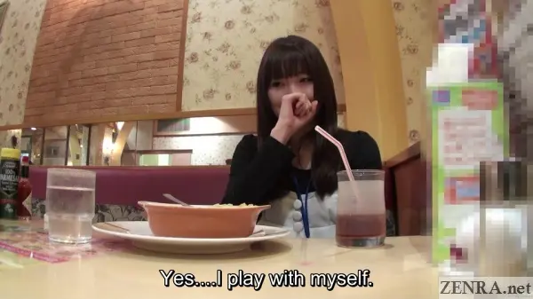 The Japanese woman starring in this release is incredibly cute. We really mean it. We love her look from the first meeting outside and in the cheap diner to her flushed face after the nakadashi finish. We love the bangs, the elfin features with a cute noise and pale skin. We love how she looks all over. We love her mannerisms!