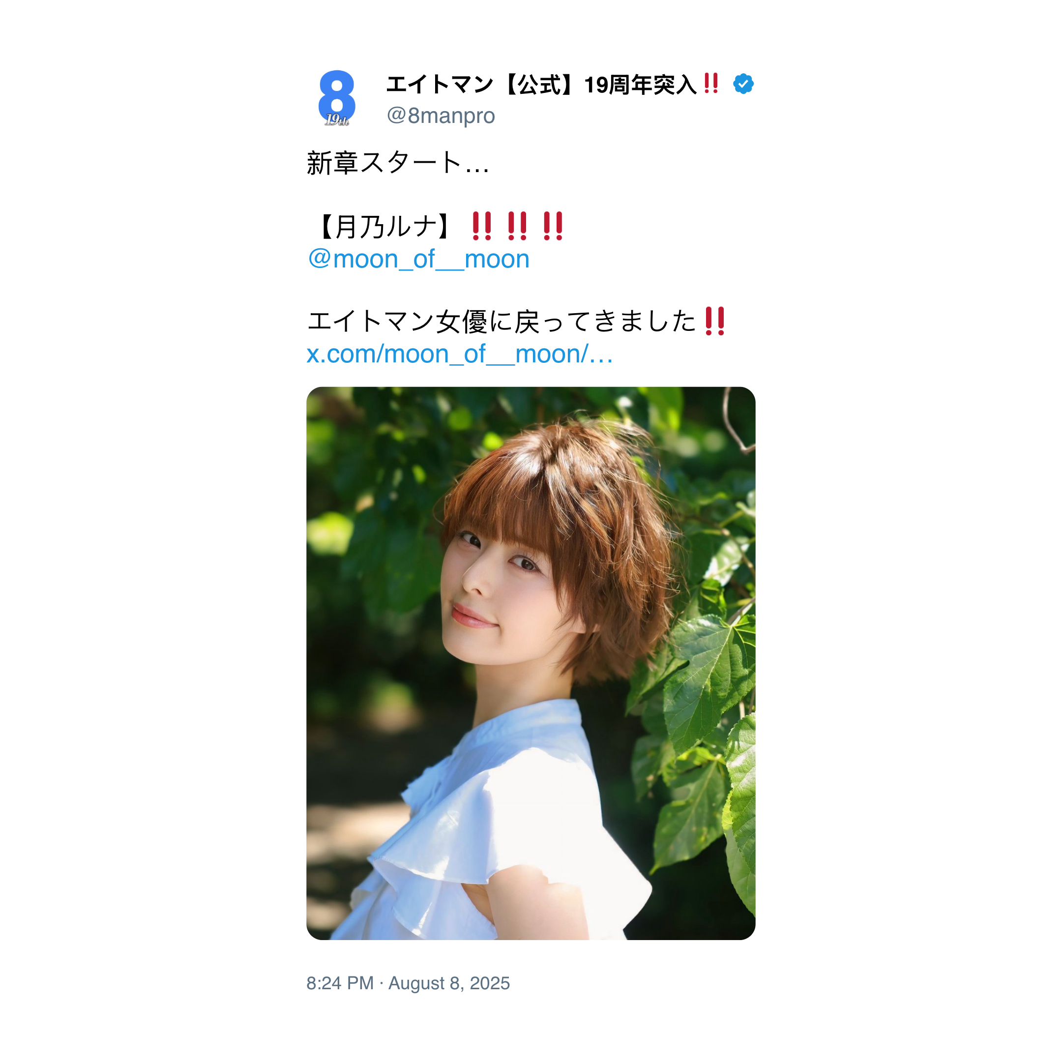 — エイトマン【公式】19周年突入‼️『8woman』3部作が終了したその先に… (@8manpro) July 1, 2025