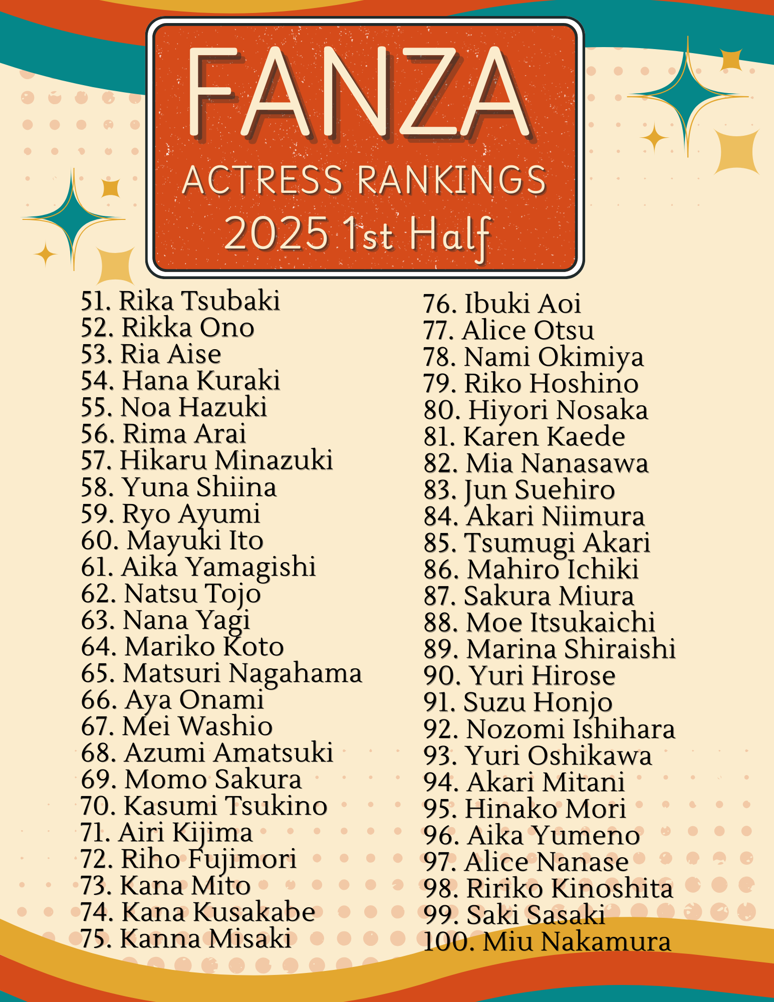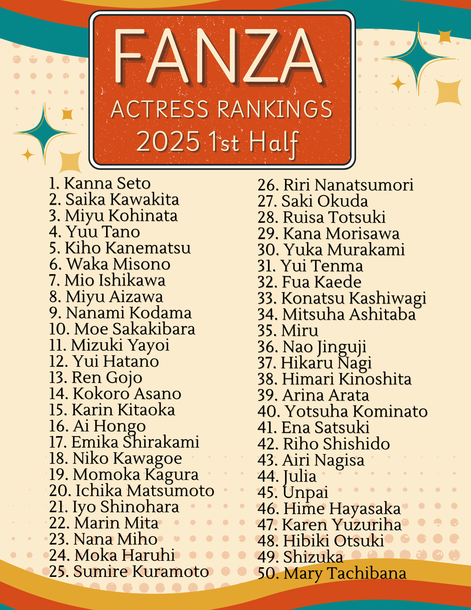 Without further ado, this is FANZA’s Actress Rankings for the first half of 2025 and the Top 25 Videos.