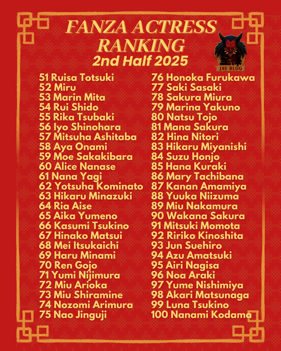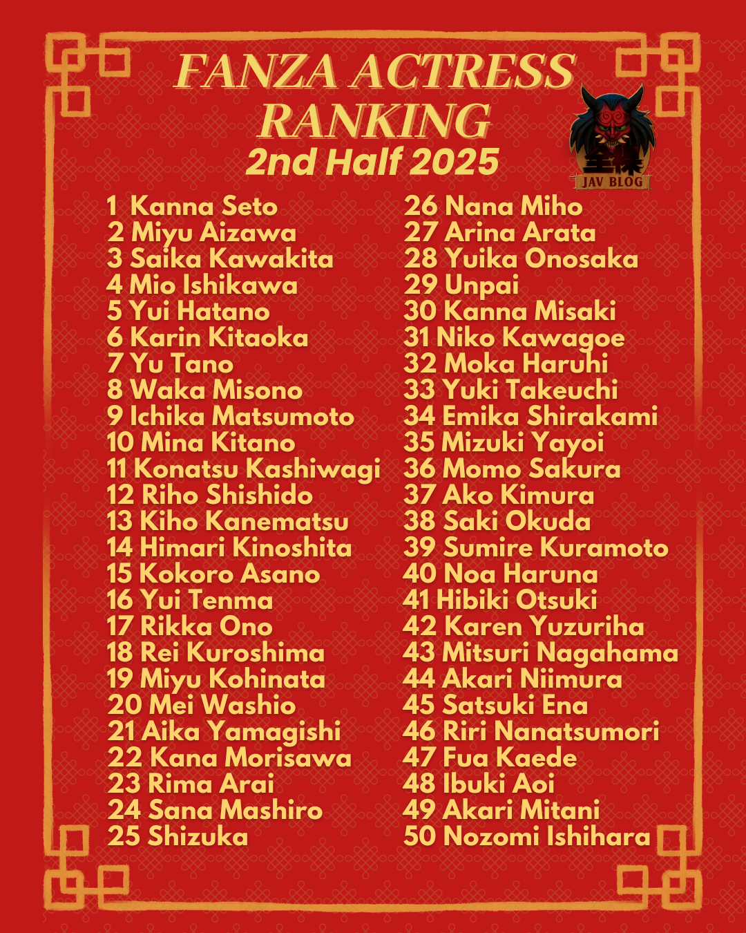 FANZA JAV Rankings 2025: Second Half