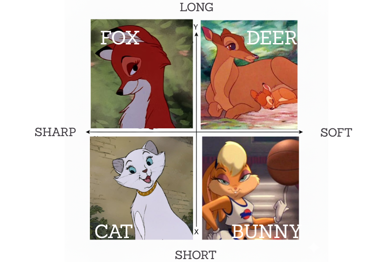 The best part about this 4 types of feminine beauty trend, namely: Bunny Pretty, Fox Pretty, Cat Pretty and Deer Pretty are so simplistic and iconic in its idea yet encompasses a wide breadth of the feminine look through a shared experience that everyone grows up to: cartoons. Using cartoons as apt comparisons to the archetypes of female characteristics is such a genius simplification of the aesthetics because cartoons are designed to be exaggerated, anthropomorphized and artistic expressions of the human look and movement applied to an art style everyone of all ages can enjoy.