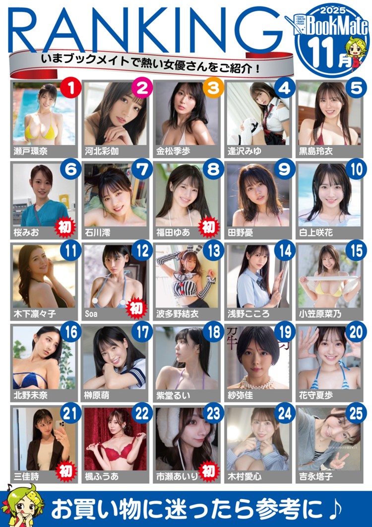 Looks like we’re finally starting to have some real competition between Kanna Seto (瀬戸環奈) and Saika Kawakita (河北彩花). On Bookmate they are 1 and 2 respectively, on DMM physical they were 2 and 1 respectively. It’s nice to see some healthy competition, though I wish it wasn’t just S1 only competition. I wonder what it will be like when Kanna starts getting good quality videos, maybe she will eclipse Saika even further.