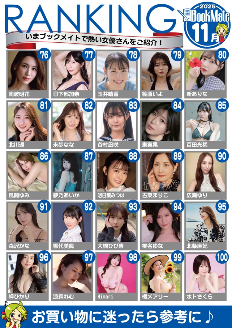 In 76th and 81st place we have two Haruka debuts, Haruka Namba (南波明花) and Haruka Kitagawa (北川遥). Madonna actresses tend to do quite well at Bookmate, maybe a little more representative of older dudes preferring physical media compared to the younger, more tech-savvy crowd. Regardless these two debuts both look decent, maybe there’s a chance for a full review of them on the blog.