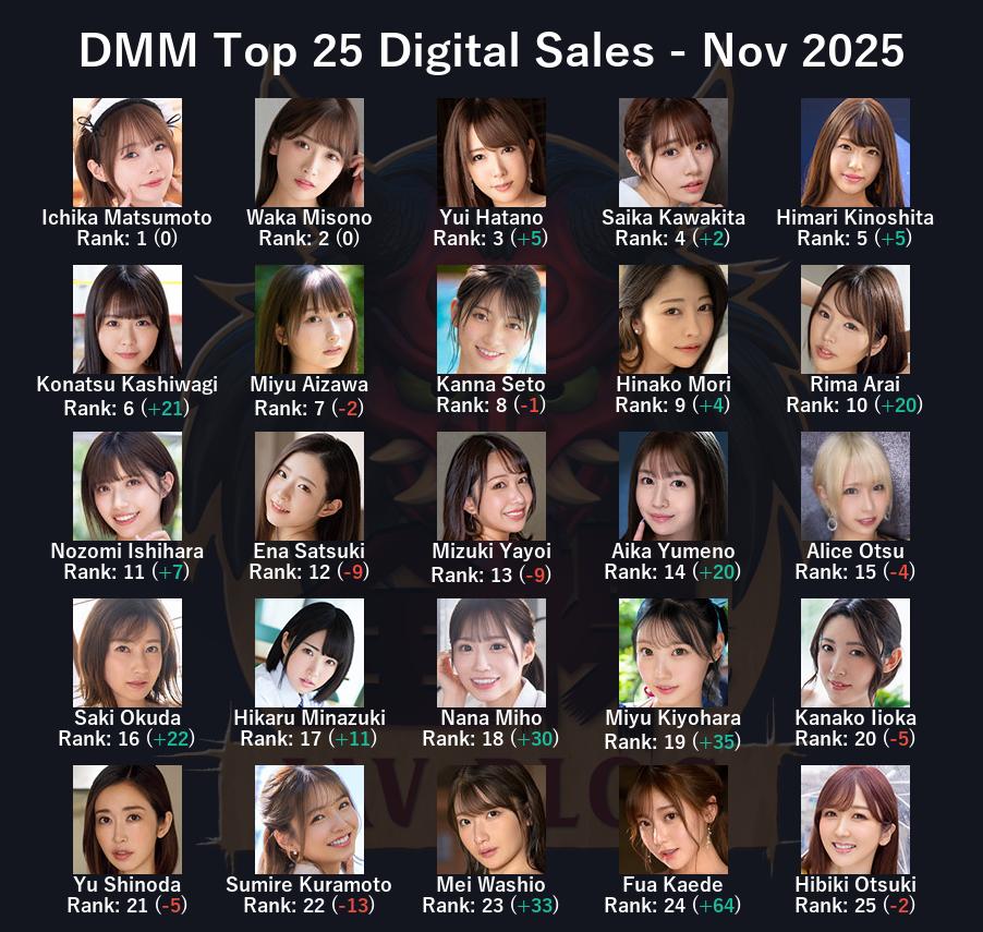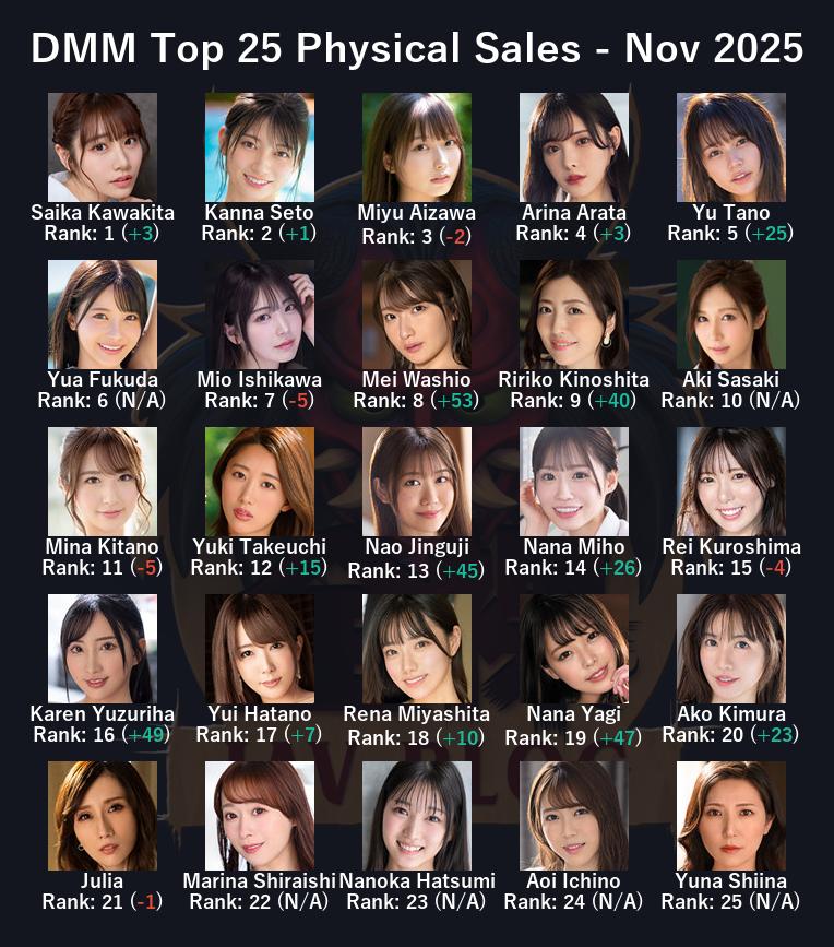 Many actresses are doing well this month and I’m going to guess it’s this giant VR film. Konatsu up 21 spots, Rima up 20, even Yui up 5 spots into third place. What can I say, people like their group videos and group VR is even rarer.