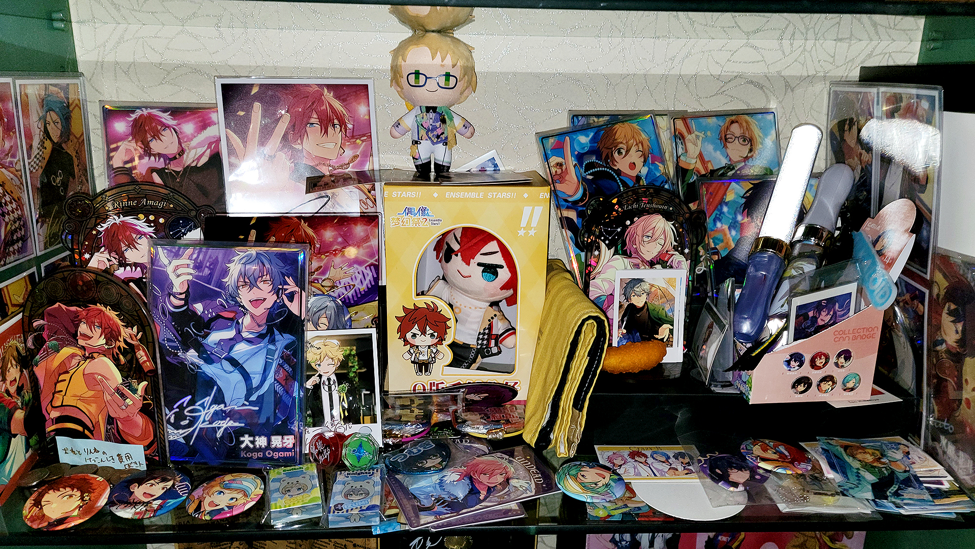 We talked to Erena about all the stuff on her lanyard and it turns out she makes her own little buttons and acrylics which she sells to fans. Not only that but fans give her homemade acrylics too.