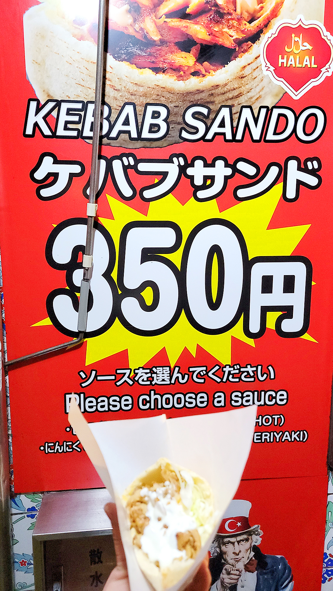 Now it was time to go to Cafe & Bar Aodai for the Gundam meetup. As this was June's first time to go too they were navigating the streets of Shinjuku to get us there. Along the way we passed by this cheap kebab store, only 350 yen for a kebab sandwich, and talked about maybe going to after Aodai which was close by.
