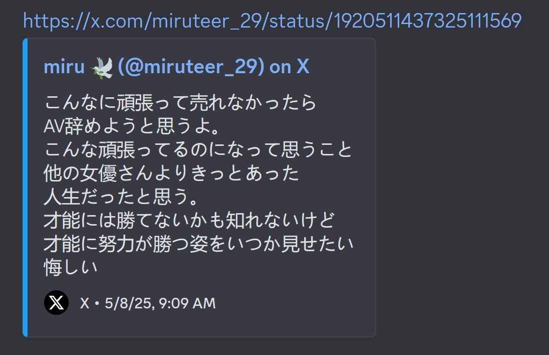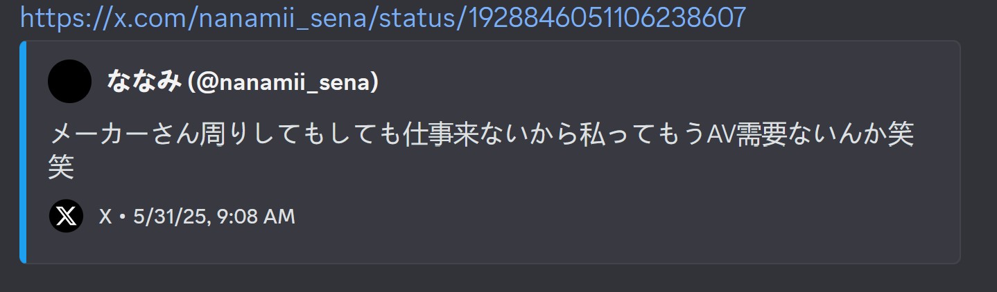 Those were the headliners, life is even harder for those down the totem pole. We see small-time actresses routinely complain about their lack of work offers. Girls like Yuuki Hiiragi and Karen Otori, who are fine talents in their own right, have to work hard to get the scant titles they are getting. Below is Nanami Sena, in a now deleted post about how she's gone around to the different AV makers for work and has come up dry. The demand isn't there for her. This is an occasional refrain from smaller name actresses. I have seen too many promising talents fade out of JAV due to their lack of success despite whatever charms, looks, or physical endowments they might have.