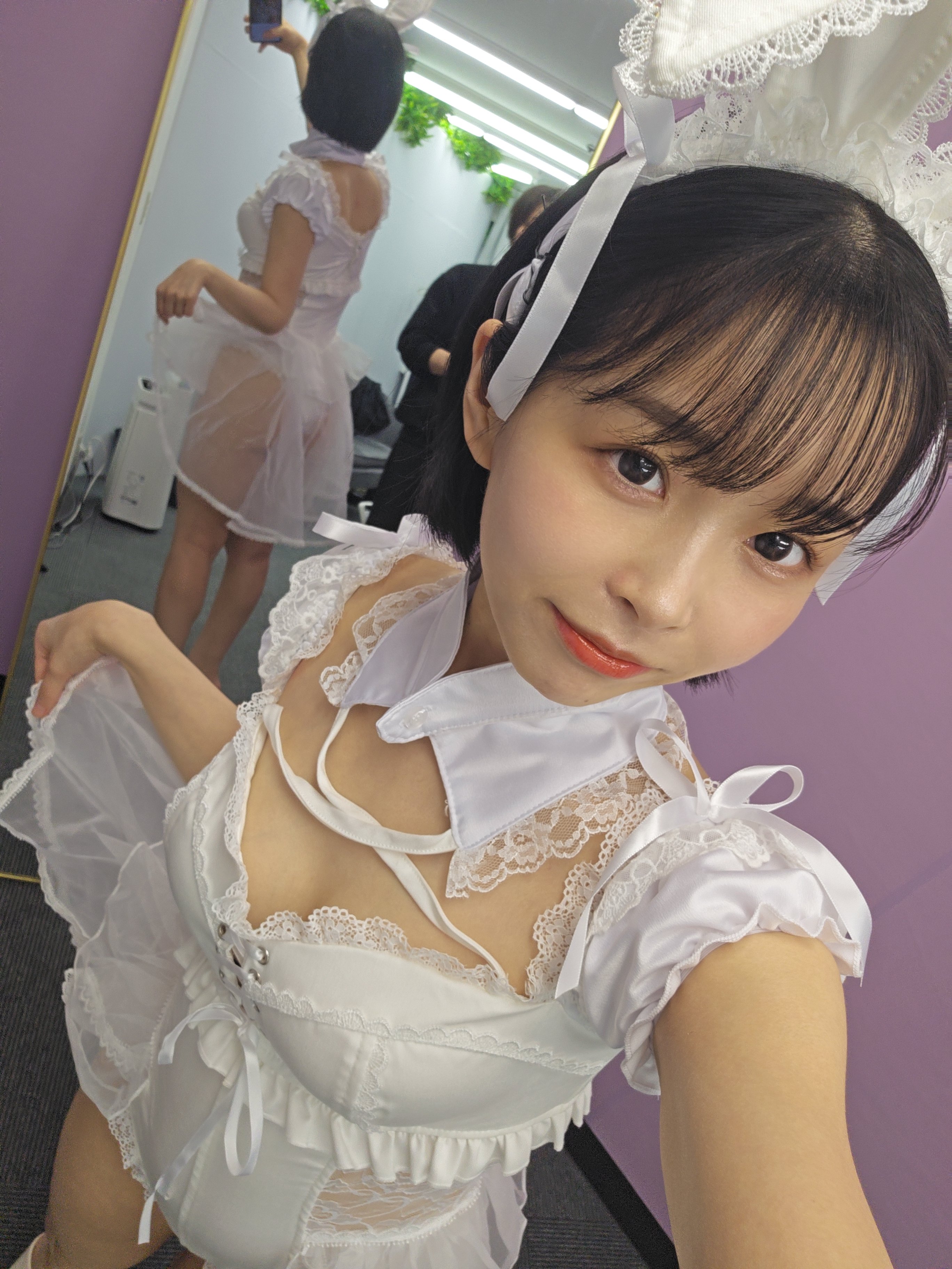 Super cute face, with round cheeks, a cute pair of lips, a nice bunny smile, and a couple of big expressive Japanese eyes. Matched with her haircut, the short bob cut, it gives her look this combination of both innocence and mischievousness rolled up into one cute package. Reminds me of early pre-op Tsukasa Aoi to be honest.