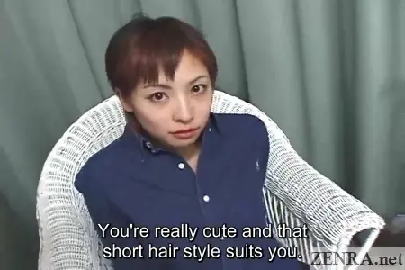 Meet AKI KATOU (also known as YURIA KATOU), a 21 year-old (at the time of filming) Japanese woman from Okayama Prefecture who is a bit naughty. She also sports a rugged short hair style which we mainly only see on women of a...uh...'butch persuasion'. Fortunately it looks awesome on AKI and only enhances her mien. Short hair usually equates to having everything about one's face being up front and center without any personal lees to hide away in so props to her for taking risks.