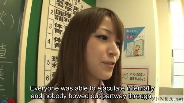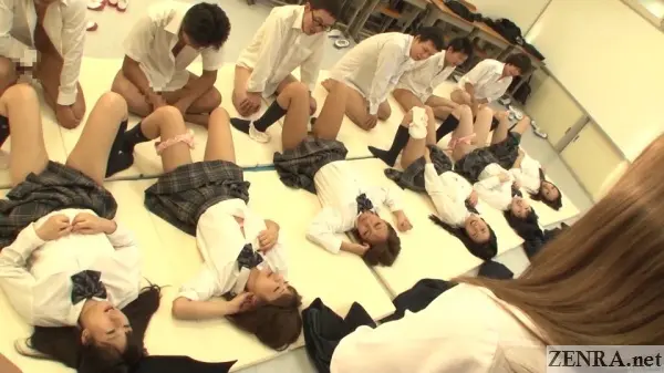 I have two issues with this update and in the grand scheme of things, both are quite minor: obviously fake creampies and no totally naked scenes. Thanks to the extra thin mosaic used in this movie, it was a no-brainer that actors were wearing condoms. You could see the sheen of rubber from a kilometer away. I know that shooting real creampies carries many risks and costs a lot more, but I'd prefer more realistic scenarios that allow the actors to leave the set without blue balls. And yes, as a fan of stark nudity (that's what "ZENRA" means after all!), I was a bit upset that all the sex in this big double update features schoolgirls in various states of undress rather than being in their birthday suits. I would of loved to have had a scene early on where each female classmate is instructed to strip naked while the teacher slowly shows off their most private areas leading to a masturbation demonstration while everyone watches. That would have been cool.