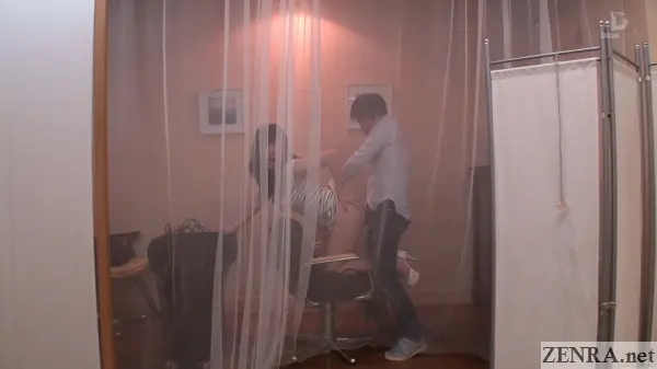 If you love JAV titles that push real risky sex to its limits--in other words are fans of our nudity releases but yearn for more modern filming, then today's update should satisfy your needs to some extent. Sure, it's filmed in one location indoors. Sure, I'm nigh on positive that everyone in the salon was 'in on it', but the concept itself is sound. I can't imagine this really happening in Japan. I mean tips don't exist here so there's really no reason for a beautiful hair stylist to secretly give handjobs, blowjobs, and more. It's hard to fathom the risks she and her client would take to have all-out sex with only a pillar separating her from her coworker. But that's what makes adult video great: taking one's fantasies and doing one's darndest to make them real given pesky social constraints.