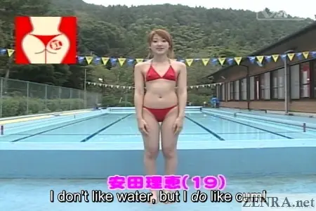 With financial melancholy out of the way, we present to you V&R's 36 WOMEN STRING BIKINI PERVERTED SWIM MEET! This is pure no holds barred big business #ClassicJAV. It was filmed at the Hayakawa Swimming Center (as is clearly noted in the credits thus is safe to say), a potentially defunct community swimming pool. The theme is less JAV title and more softcore series of games that at times will feature some accidental nudity. After all, all contestants wear tiny string bikinis and with all that moving around, sometimes certain body parts may pop out.
