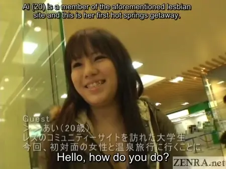 If we had to pigeon-hole FIRST TIME LESBIANS SECRET HOT SPRINGS VACATION 1 into a certain genre, it would "lesbian seduction-themed amateur nanpa".  In fact, the first scene pretty much plays out like this while the other 3 feature 'guests' who are have already admitted to having an interest, but ZERO experience in same-sex romantic relationships.