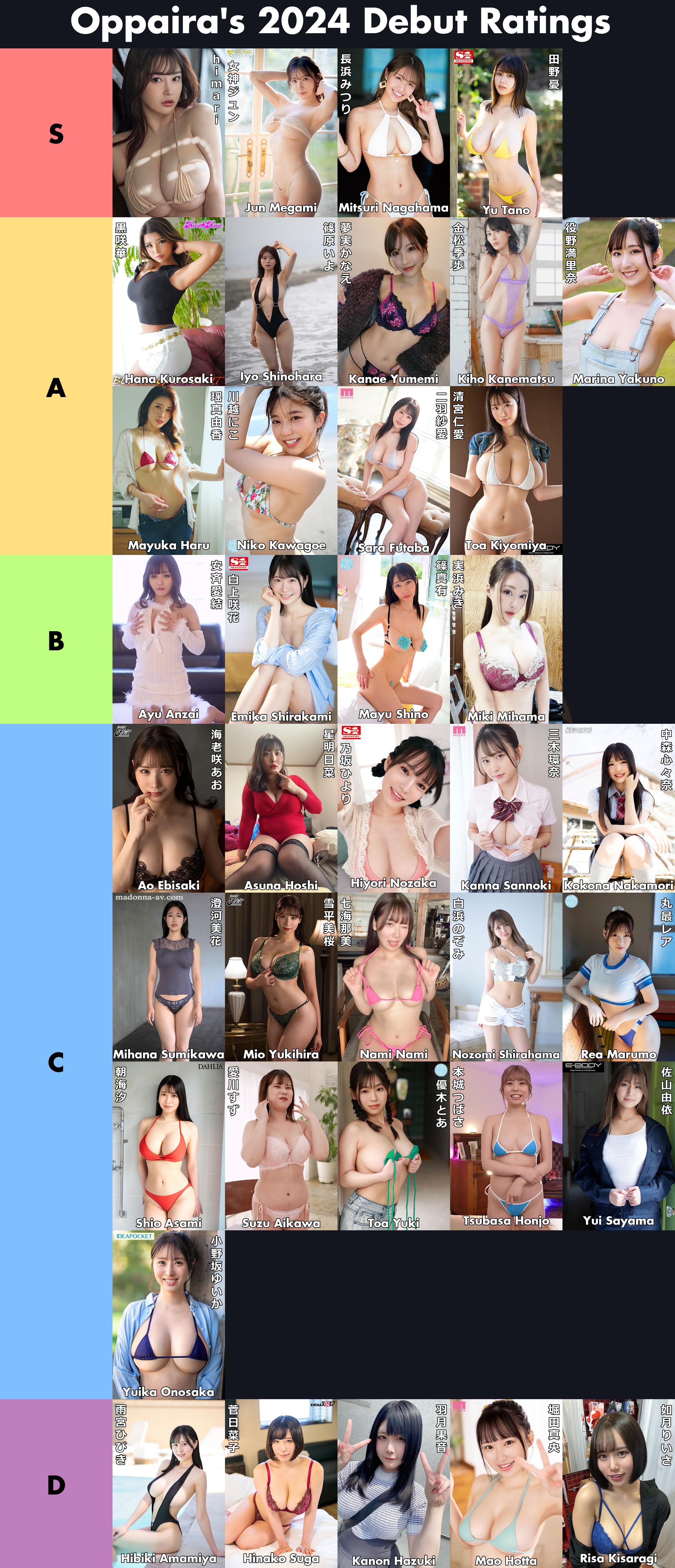 Hey guys, welcome to the roundup post for another batch of 2024 debuts. You all know the drill by now, I like to check out a second batch in the new year just to make sure there isn't anyone I missed. I find that I generally do a good job these days finding the right actresses, but there are always some late debuts, actresses that have blossoming careers, or even just actresses I gloss over that turn out to be more than meets the eye. As a quick reminder, you can see all 38 debuts that I've reviewed in my advent calendar post. It's a simple one-stop-shop where you can see which ones you're interested in finding more about and then dive deeper. With that all said let's go check out this batch.