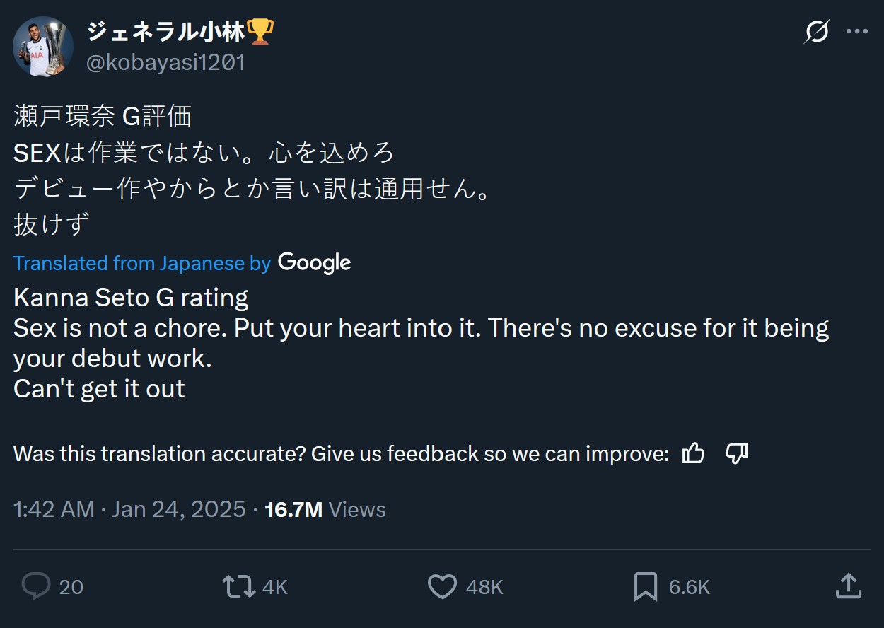 I rarely include rookies in these Red Hot Reports because it feels too premature most of the time to name the current flavor of the month. However, this next rookie is just too hot not to name. Kanna Seto has burst onto the scene like a freight train with no brakes and open rails. In the years I’ve been covering JAV, I haven’t seen a rookie capture the ’s attention like she has out of the gate. The former “Gravure model”, in quotes because she really wasn’t, has been a top seller ever since she debuted in the top spots for FANZA rankings and various storefronts in Japan. People all over are talking about her and not just in Japan. Her AV debut announcement garnered tens of millions of views, and if you want to know how popular she is, so did a random negative review from some Japanese netizen. She gets people talking.