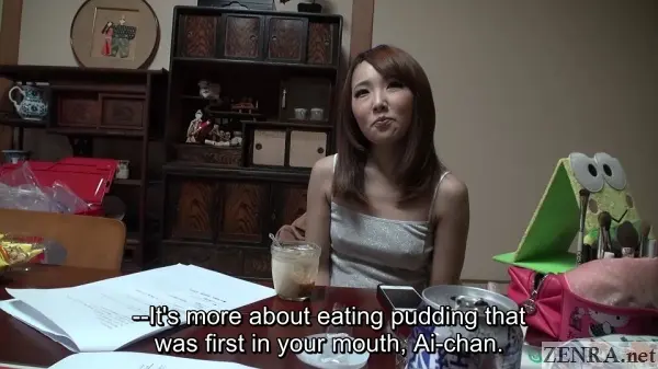 play also happened in a manga internet cafe, but this time it centered around a covert CFNM penis examination of SADE SATOU. AI was curious, handsy, and even used her mouth (and nose too of course). This was a bizarre scene in that it didn't conclude with an ejaculation (that came much later), but simply featured her smelling, touching, and licking the more indecent areas of SADE's body in very close quarters.