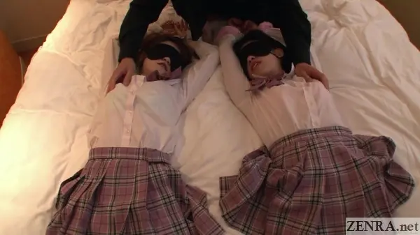 Start soft with lightly bound schoolgirls Chiharu Miyashita and her BFF Hikari Sakamoto. They’re blindfolded too, but their tongues are out and they’re deliriously horny! They want sex more than life itself! They want to breathe in your pheromones as if they contained the elixir to supernal living! They’re already gushing love juice at rates surpassing all the world’s great waterfalls yet they still can’t get enough! They want you and they want you BAD!